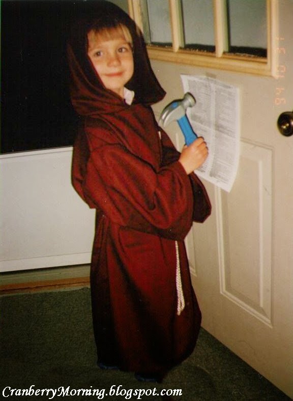 Some of you have seen this before, but this is my favorite costume I made for one of our kids - back when. We had a Reformation Day party and Joe dressed up as...