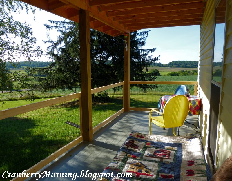 If I had your spectacular view from my front porch, I'd definitely screen it in, too. We live next to some woods, so we have mosquito problems, as well.