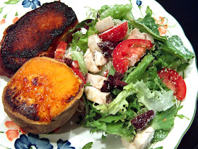 Well I won't mention any more about our warm February...OOPS, I guess I just did! Sorry! That sweet potato makes me want to go home and make myself one...and the salad looks yummy!Yes, I agree...your daughter is a true beauty, like her Ma...Happy Birthday to her! Hang in there, sweet friend. ;)