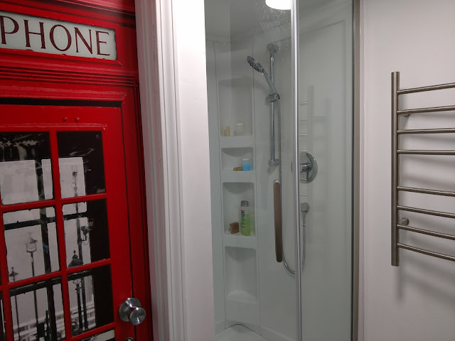 We included one of the best things the British invented (or at least that we first encountered on trips to England) - the heated towel rack! It's wonderful! I hang my robe on it at night and have a warm robe to step into in the morning! By the way, the difference between our towel rack and theirs (UK) is that ours is operated by electricity, so we just leave it on all the time. Very low heat, low cost, but makes so much difference!